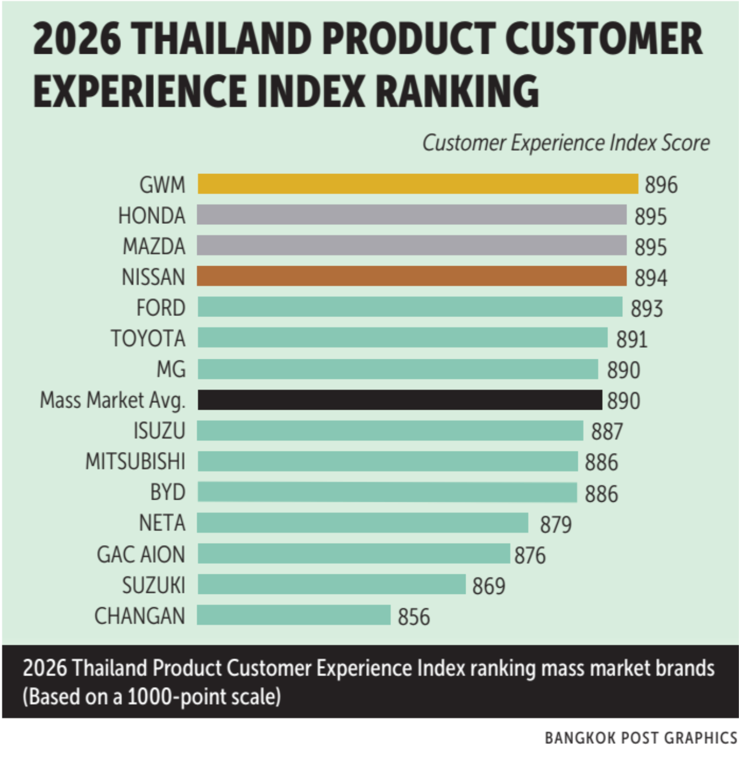 According to the inaugural 2026 Thailand Product Customer Experience Index (Product CXI) Study released today (March 31) by Differential (Thailand) Ltd, the "old guard" of the automotive world is successfully fending off challenges from new market entrants.