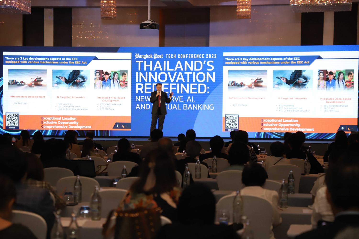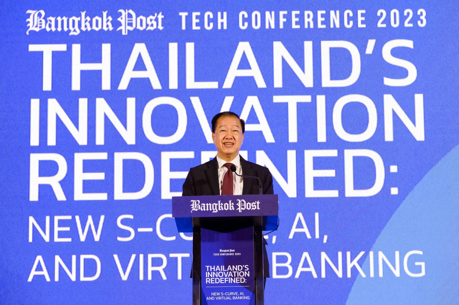 The conference titled ''Thailand's Innovation Redefined: New S-Curve, AI, and Virtual Banking'' AI has emerged as a powerful force driving innovation, shaping our daily lives, and redefining how we work and interact in society. The conference will delve into the profound impact AI has had and will continue to have on these domains.