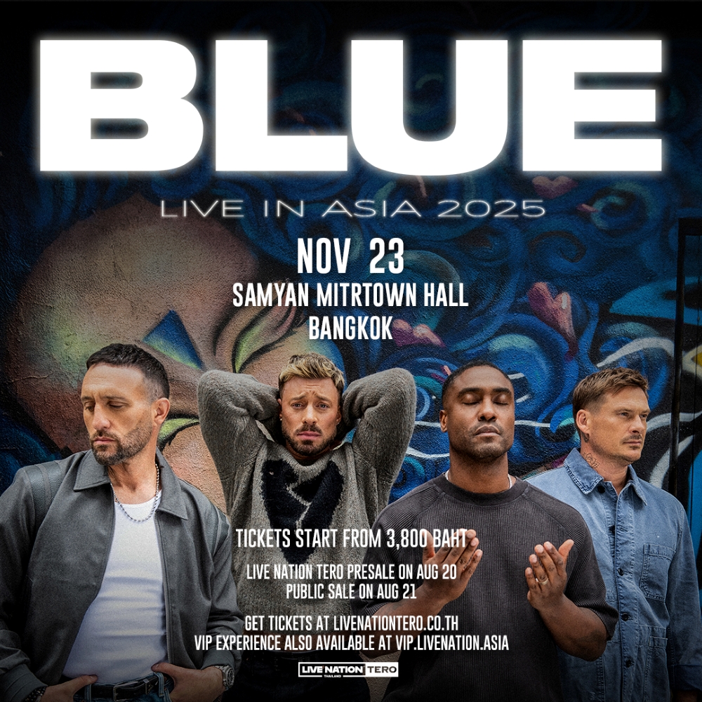 Simon Webbe, Duncan James, Antony Costa and Lee Ryan will perform in Bangkok at Samyan Mitrtown Hall on November 23. It'll be their return in 10 years since Blue Live In Bangkok in 2015. Fans can expect a setlist of the best hits from their six studio albums, befitting the band's 25th anniversary.