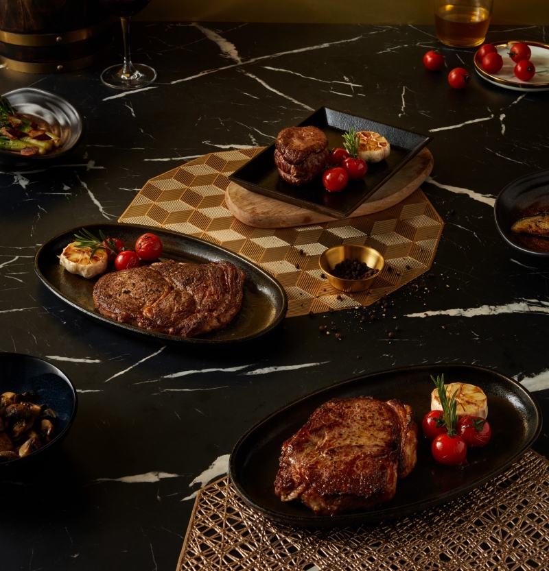 The menu opens with indulgent expressions such as Pan-seared foie gras and Wagyu beef carpaccio, before moving into the comforting elegance of Lobster bisque and the freshness of Burrata and heirloom tomato. At its heart lies the grill — featuring USDA Prime Tenderloin, Kilcoy Wagyu striploin and chef-recommended Westholme Wagyu ribeye, complemented by refined sauces including Café de Paris butter and truffle cream.