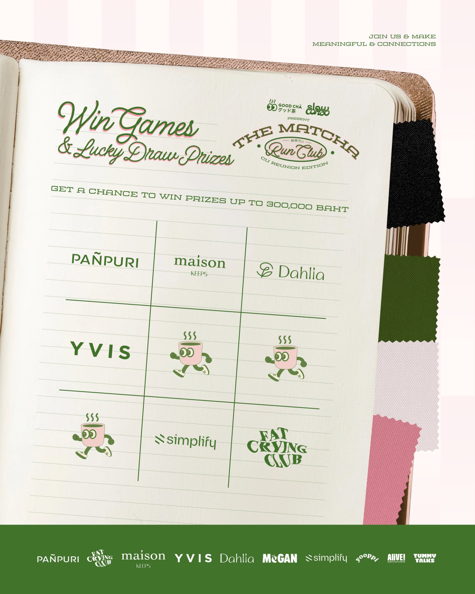 Goodchā and Slowcombo are holding “The Matcha Run Club Vol.2 – Chula Reunion” on March 21. A fun and relaxed morning gathering where the run is optional, but mingling and connections are the real highlight is the name of the game. The special edition brings together matcha, music, movement and great people for a vibrant community morning. Join for a DJ Party, game sessions and a Lucky Draw with prizes worth more than B300,000 from Chulalongkorn alumni brands, including Simplify, YVIS, Maison KEEPS, Fat Crying Club, and more. Tickets include food, drinks, activities and a special Goodie Bag to take home.