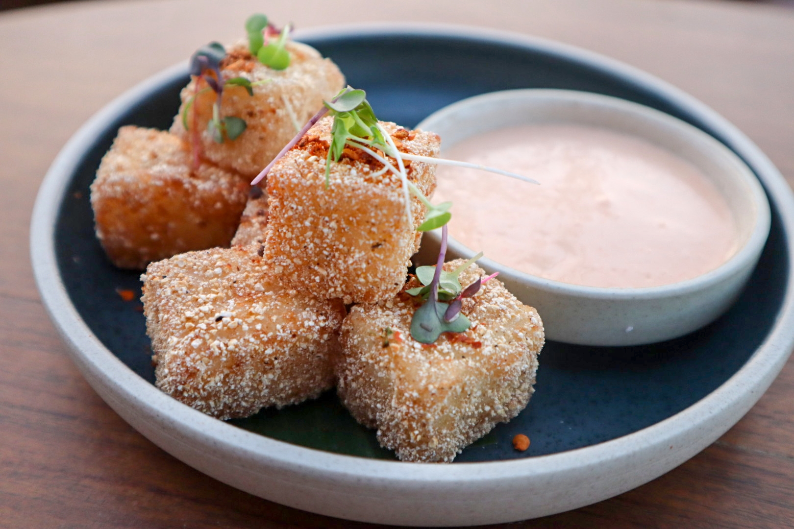As I mentioned, the menu book is skewed toward the drinks section, leaving only a few pages for food but that doesn't mean there's nothing worth sinking your teeth into. You may notice familiar flavours, but they all come with some kind of twist. Crispy pork skin is served with pickle chilli instead of nam prik, for instance. Crispy rice popper is served with spicy mayonnaise and uses Japanese rice.