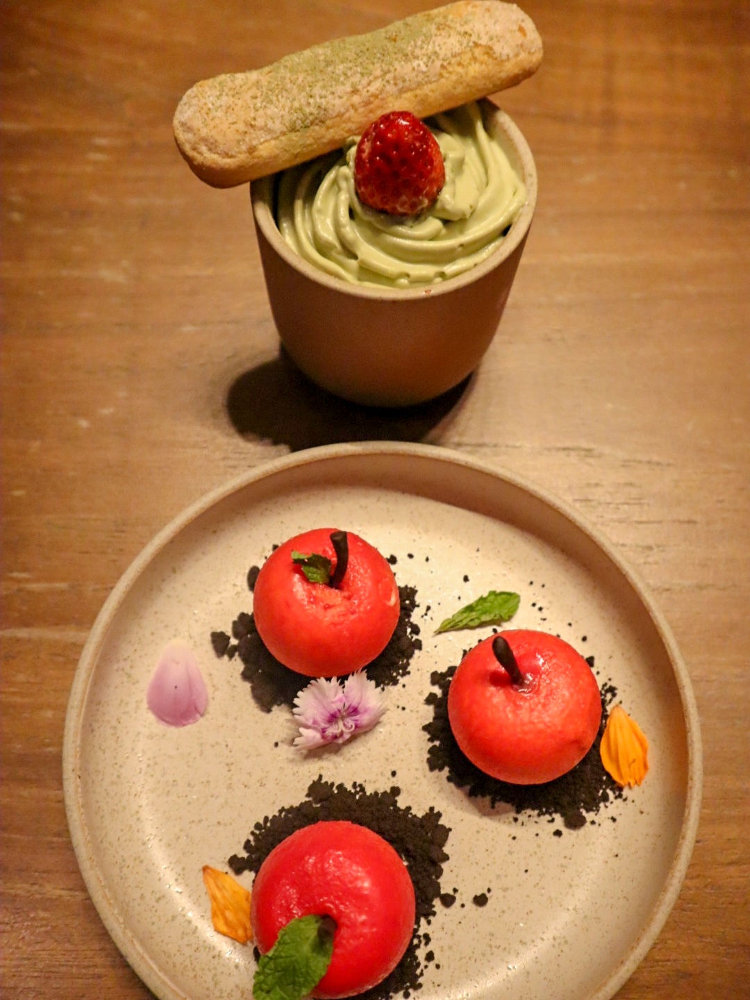 For an indulgent end to the meal, Matcha tiramisu offers a moist green-tea soaked sponge while Apple Make A Wish offers a trio treat of apple mousse, white chocolate and raspberry puree.