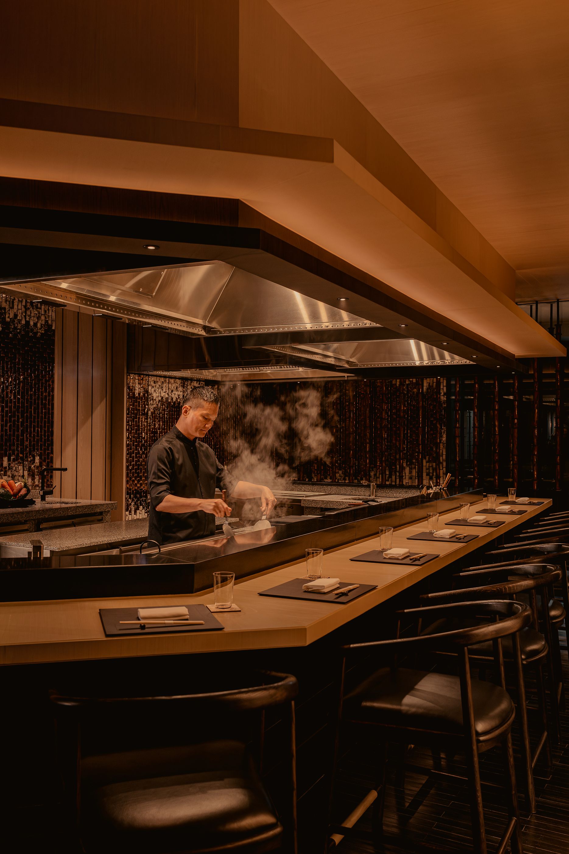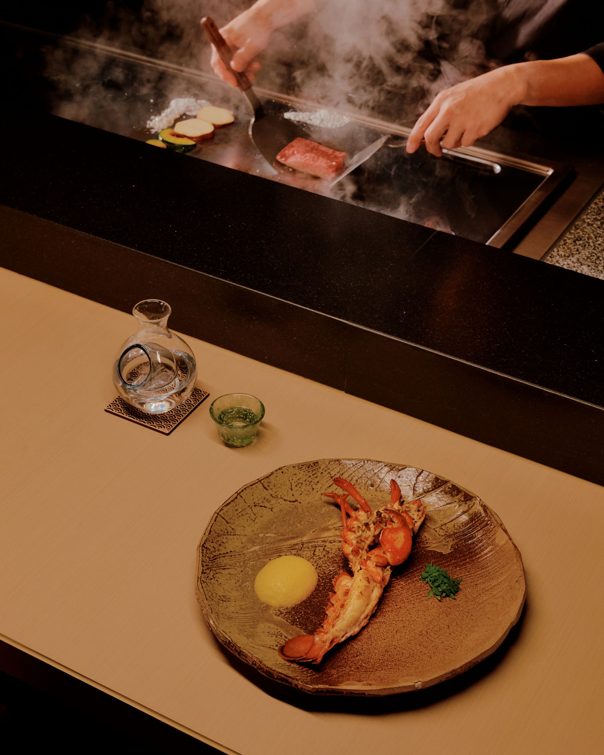 Located on the 19th floor of Aman Nai Lert Bangkok as one of two Japanese dining concepts within the Aman Club, Hiori presents an elevated and intimate teppanyaki experience paired with attentive (nigh doting) service.