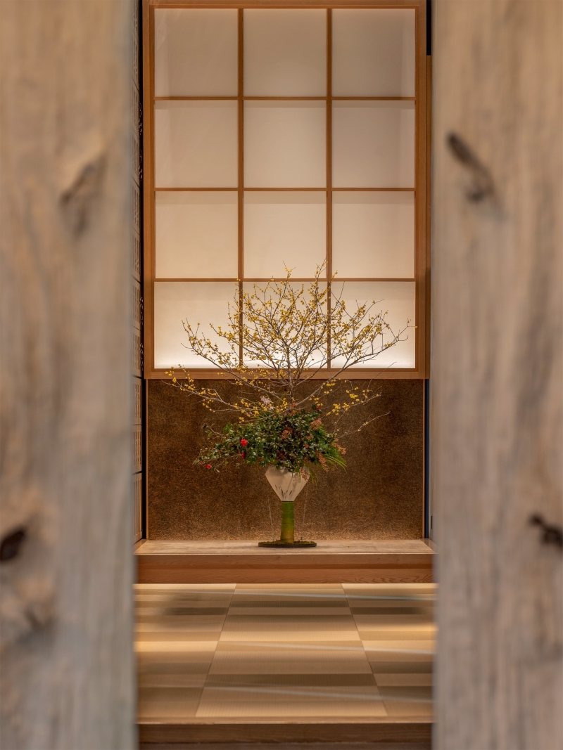 The entryway is lined with floor-to-ceiling bamboo lockers that store your shoes, before going to the upper-level guest rooms. But it is the sheer sight of the bamboo boxes that line an entire wall, floor to ceiling, to the ikebana plant that changes with the seasons, that may lead to an audible gasp. Once on the tatami mats, you are allowed to roam the entire hotel in your socks (the Japanese way) or barefoot, whichever feels more comfortable. It is much like being at home.