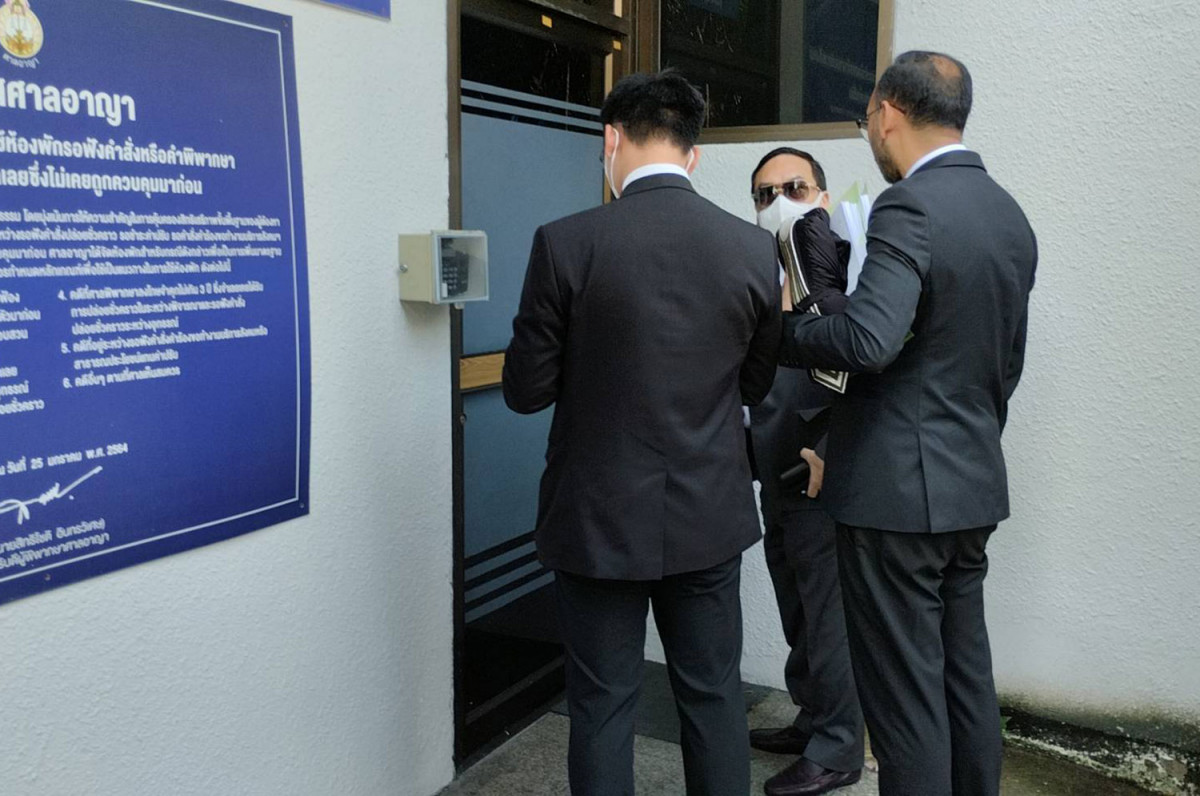 Sen Upakit, accompanied by his lawyer, arrived at the Criminal Court wearing a face mask and sunglasses.