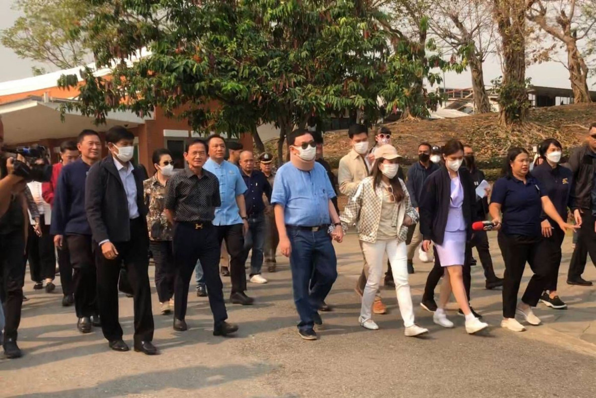 Accompanying Thaksin were former prime minister Somchai Wongsawat and his wife Yaowapa, who is Thaksin’s sister; Chatuporn Burutphat, the permanent secretary for natural resources and environment; and Chiang Mai Governor Nirat Wongsitthithavorn.