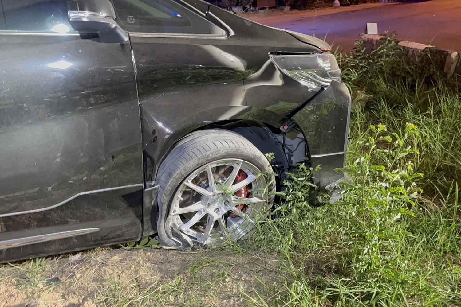 The two black Toyota Alphard vans, licence plate numbers Kor Hor 288 and Kor Sor 288, were registered in Bangkok. One hit a bridge pillar and one of them burst into flames after the crash. Eyewitnesses who rushed to help were able to put out the fire.